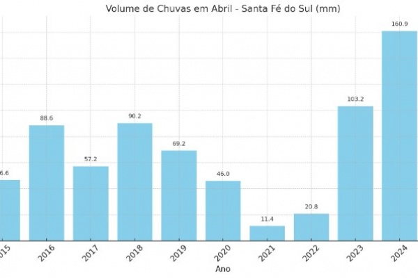 O mês de abril de 2025 já pode ser considerado o mais chuvoso dos últimos dez anos em Santa Fé do Sul. Segundo dados da Estação de Tratamento de Água (ETA) do Saae Ambiental, até esta terça-feira (29), foram registrados 164,4 milímetros de chuva no município, superando os índices observados no mesmo período dos anos anteriores.